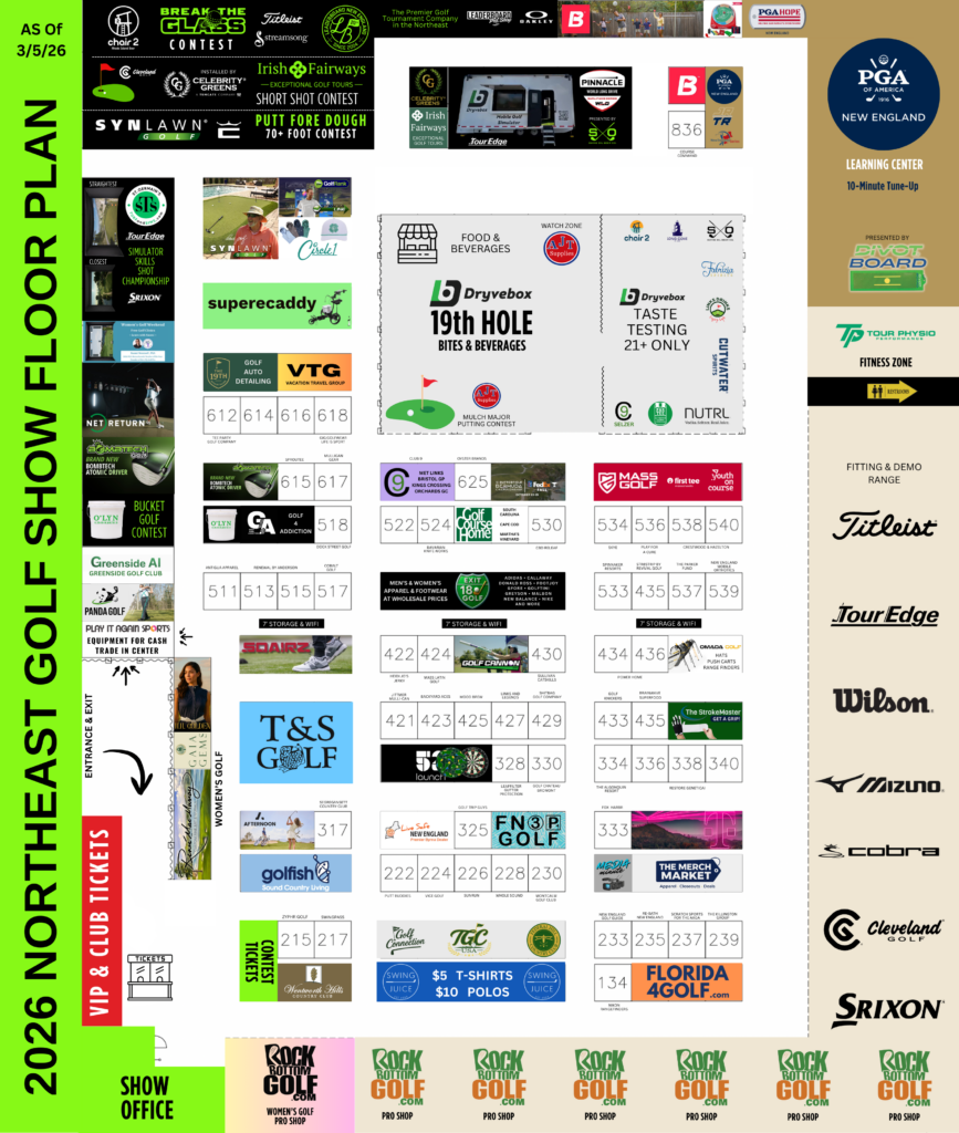 Be sure to schedule a body-swing assessment with Tour Physio to improve your strength and mobility this year. Thinking of moving to a Golf Course Home? You can speak to an agent representing multiple communities. In this year’s Contest Corner we have the SYN Lawn New England Putting Championship, Chair 2 Break the Glass by Leaderboard New England and the all-new Irish Fairways Short Shot Challenge to a Celebrity Custom Putting Green. Play one or play all for a chance to win amazing prizes and a to Come Back for the Sunday Shootout!